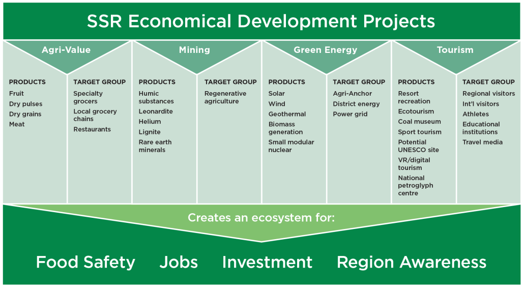 Through our partnership with the South Saskatchewan Ready Regional Economic Partnership (SSR), the four industry pillars below have been identified as top industries for development in the area.